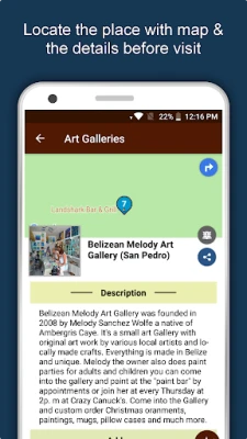 S aplikáciou Belize Travel & Explore sa plánovanie vašej expedície stáva radosťou. Získajte prehľad o tom, prečo, kedy a ako navštíviť rozmanité miesta v Belize, s presnými polohami na detailnej mape. Ponúka vám tri intuitívne spôsoby objavovania: prehľad podľa kategórií, pohľad podľa miest a možnosť uložiť si obľúbené destinácie do EduBank. S ľahkosťou si označte svoje ciele a okamžite získajte navigáciu priamo na mape. Vďaka integrovanej funkcii Street View si môžete vopred pozrieť, ako vyzerajú jednotlivé lokality, čím získa vaša cesta konkrétnu podobu. Po prihlásení môžete hodnotiť a zdieľať svoje zážitky, čím prispievate k obohacovaniu komunity cestovateľov.